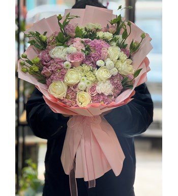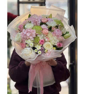 Pembe beyaz çiçeklerden oluşan buketimiz