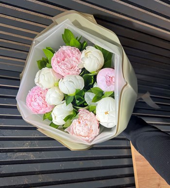 Pembe bukette Beyaz ve pembe şakayık buketi