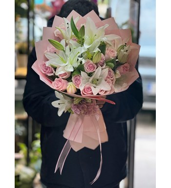 Pink White Beyaz Lilyum Pembe Güller Buketi