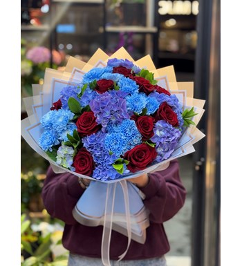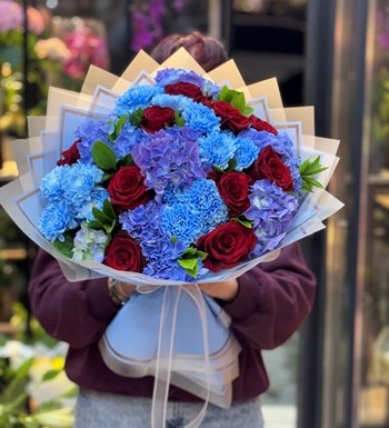 Kişiye özel zarf baskılı Mavi altaj buketi