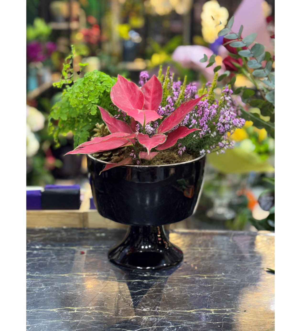 Ayaklı seramik saksıda flower garden | Çiçek Pasaj