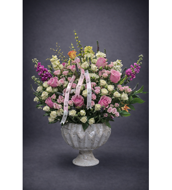 Ayaklı vazoda pembe ve beyaz güller