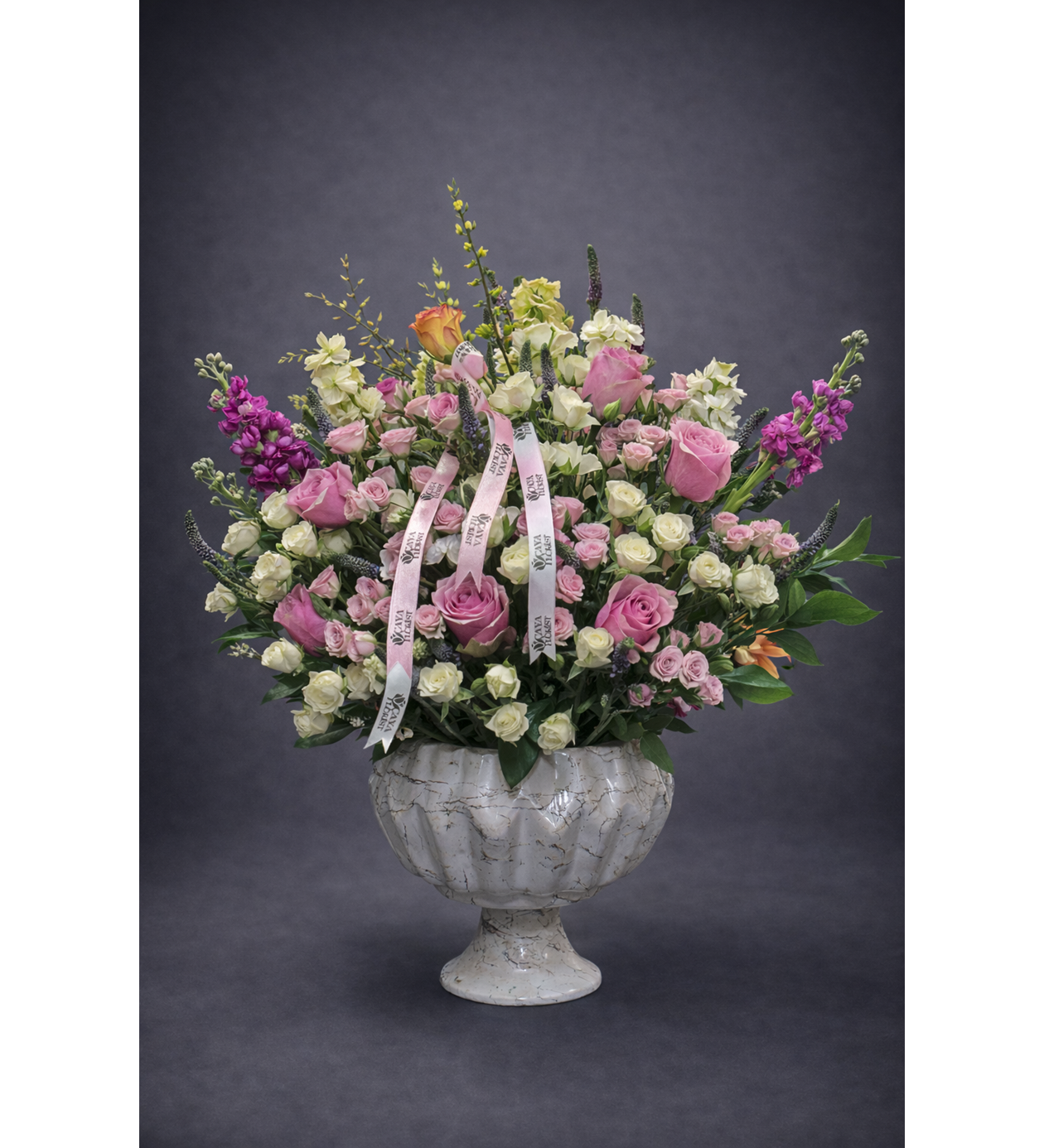 Ayaklı vazoda pembe ve beyaz güller | Çiçek Pasaj