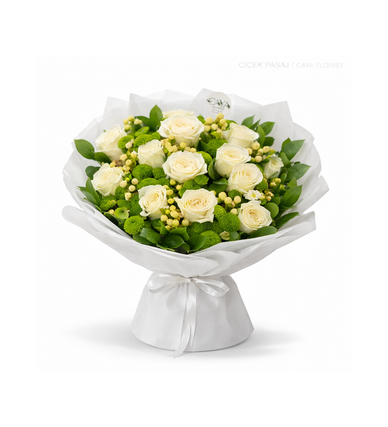 Beyaz ekvator gül , krizantem ve hiperikum | Çiçek Pasaj