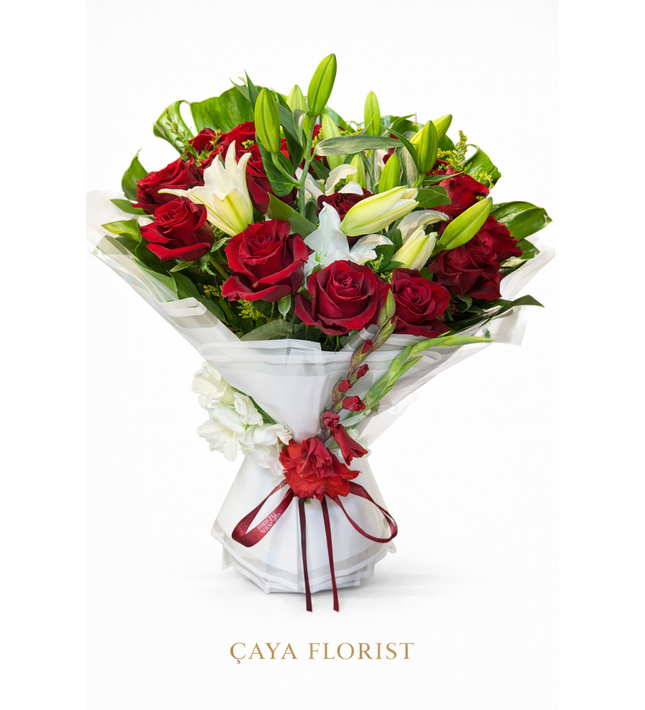 Beyaz lilyum ve Kırmızı ekvator gül buketi | Çiçek Pasaj