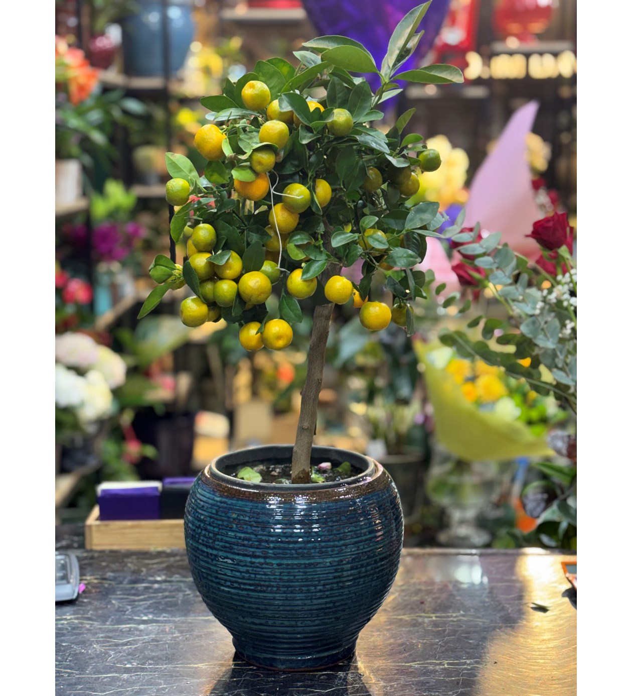Özel vazoda mandalina bonsai | Çiçek Pasaj