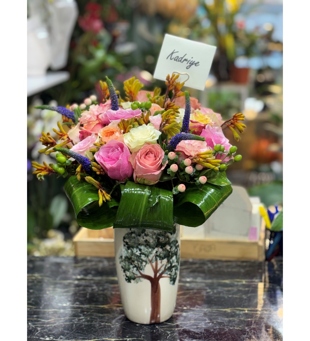 Seramik Vazoda renkli güller | Çiçek Pasaj