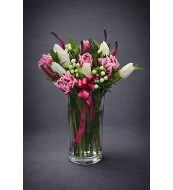 Yunus vazoda pembe ve beyaz lale aranjmanı | Çiçek Pasaj